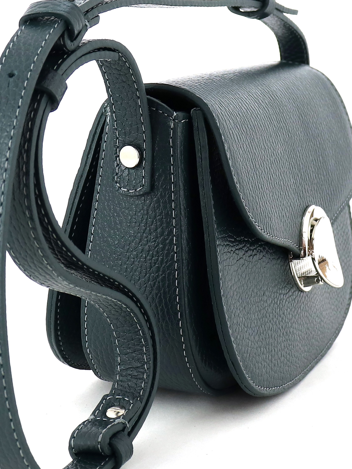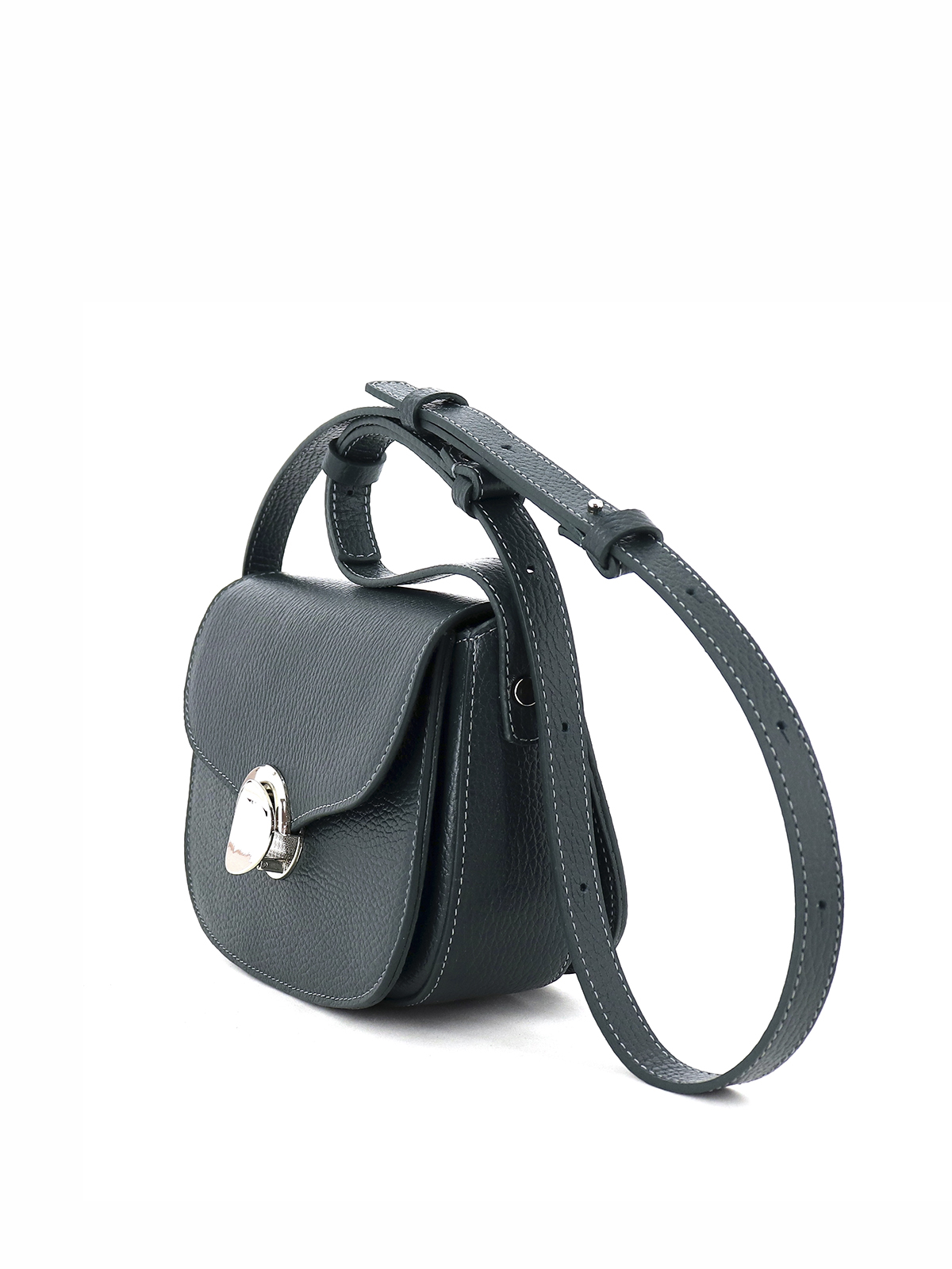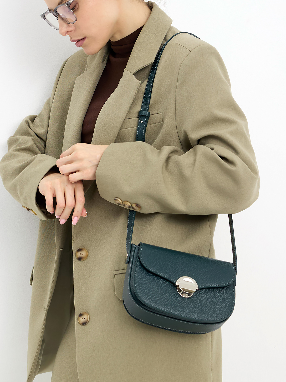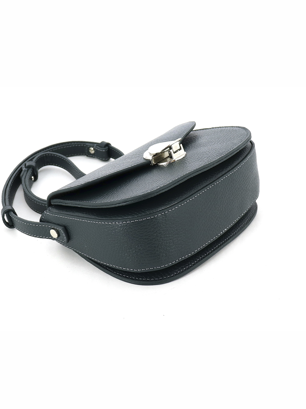 Минималистичная женская сумка красивой полукруглой формы выполнена из натуральной кожи с ярко выраженной фактурой. Стильная фурнитура добавляет индивидуальности и создает тонкий акцент в образе кэжуал. Одно вместительное отделение под клапаном на застежке внутри дополнено карманом. В комплекте кожаный плечевой ремень 130 см с регулировкой по длине. Комфортная высоким и невысоким девушкам. Небольшая компактная размеры: 19*14*8 см. (ширина высота глубина). Сумочка женская выполнена из натуральной премиальной мягкой кожи